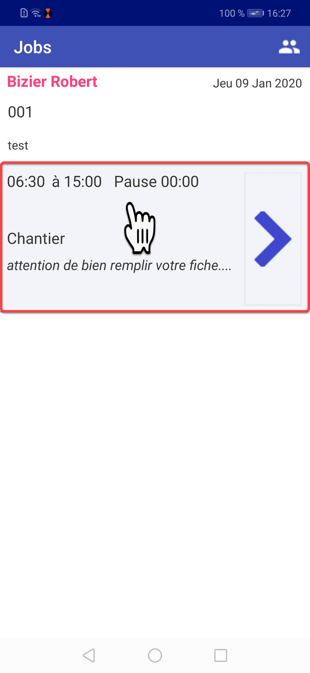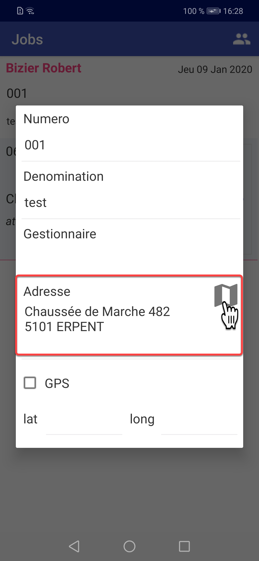 Cliquez sur l'icône carte pour ouvrir le GPS du mobile