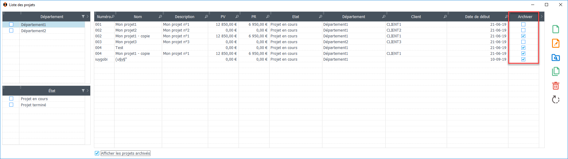 Afficher les projets archivés Cochez la case "Afficher les projets archivés" Astuce : Les projets archivés sont différenciables grâce à la colonne "Archivé"