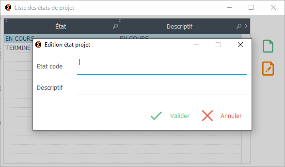 Ajouter un état projet Pour ajouter une activité, cliquez sur "Nouveau" Remplissez les champs et cliquer sur "Valider"