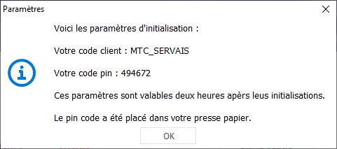 Le code client, ainsi que le code pin (généré automatiquement toutes les deux heures), sont à communiquer à vos collaborateurs pour lier l'application mobile à votre plateforme.