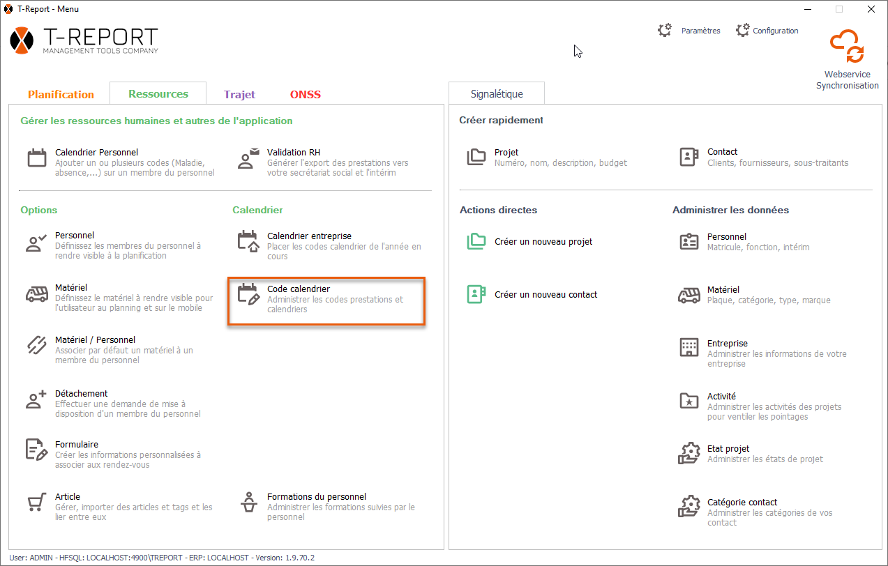 L'administration des codes calendrier se trouve dans le module "Code calendrier".