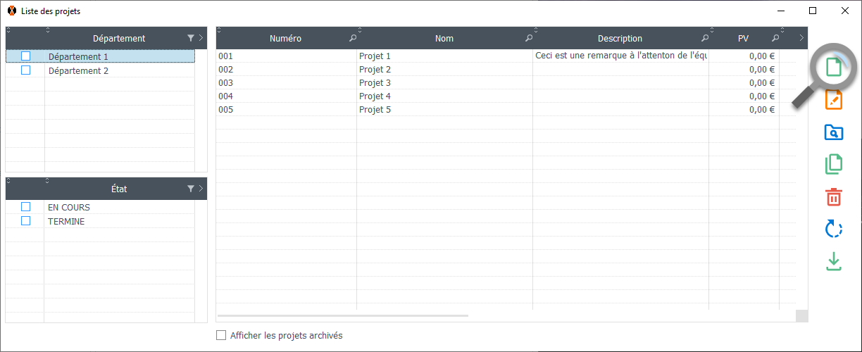 Astuce: Pour sélectionner un client, cliquez sur l'icône "Recherche client"