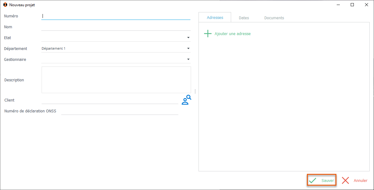 • Remplissez la fiche signalétique et validez en cliquant sur "Sauver"