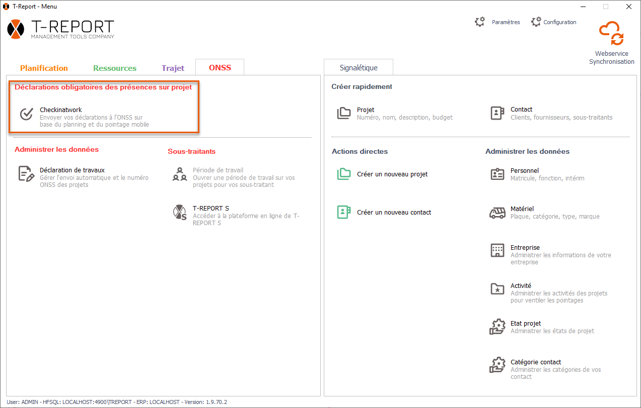 Le module "CheckInAtWork" permet d'envoyer vos déclarations à l'ONSS sur base du planning et du pointage mobile.