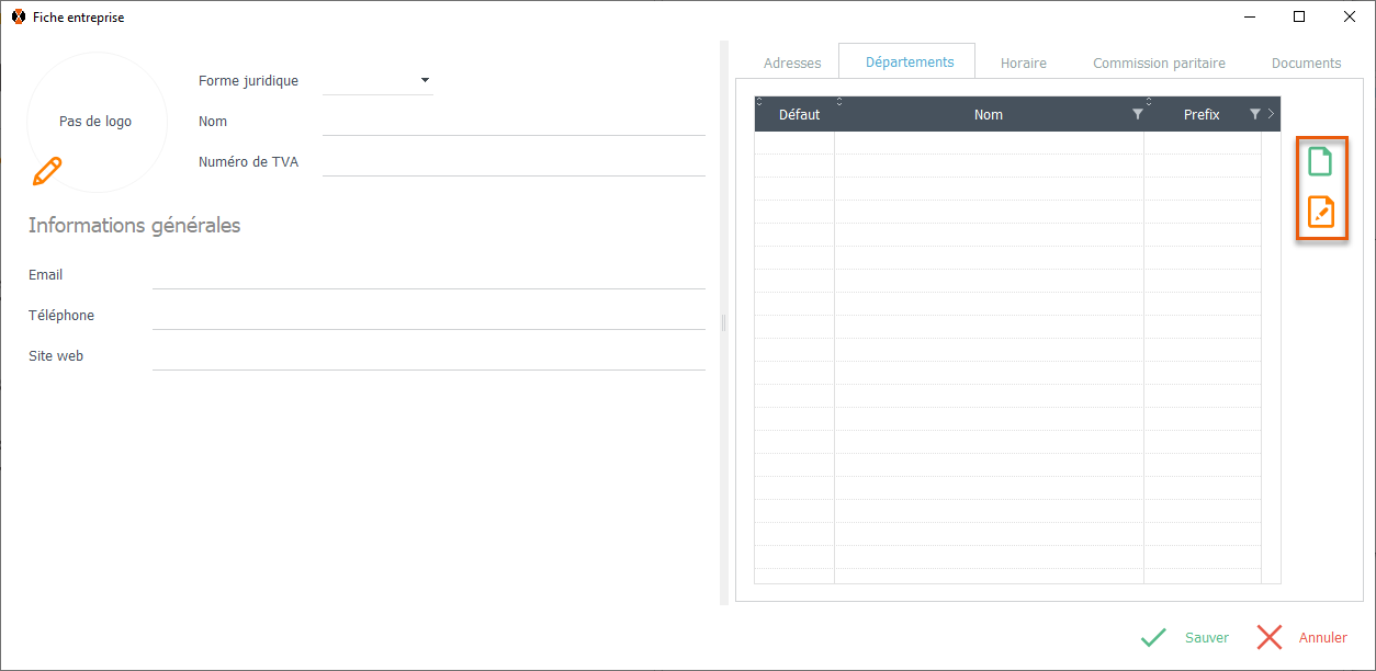 Vous pouvez administrer les départements à partir de cette page.