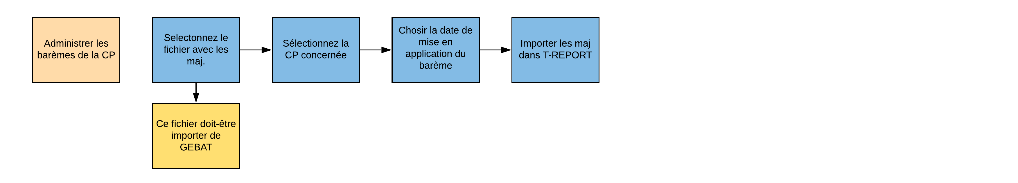 Consultez la rubrique "Barèmes" de l'onglet "Trajet" pour administrer les barèmes à importer dans T-Report en vue du calcul des indemnités de déplacement et mobilité