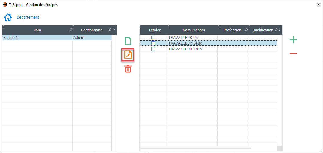 • Sélectionnez une équipe et cliquez sur l'icône "Editer"