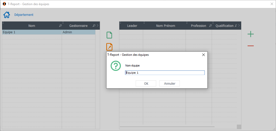 • Spécifiez le nom de votre équipe et validez en cliquant sur "OK".