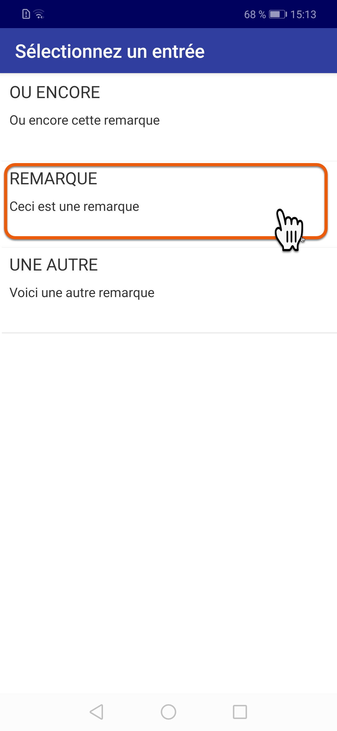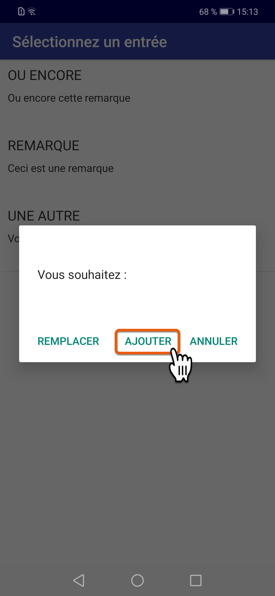 Pour arriver à cet écran, suivez la procédure "Consulter" à la page 5