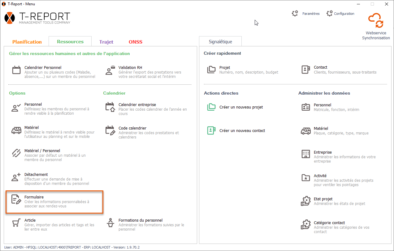 L'administration des formulaires se trouve dans le module "Formulaire".