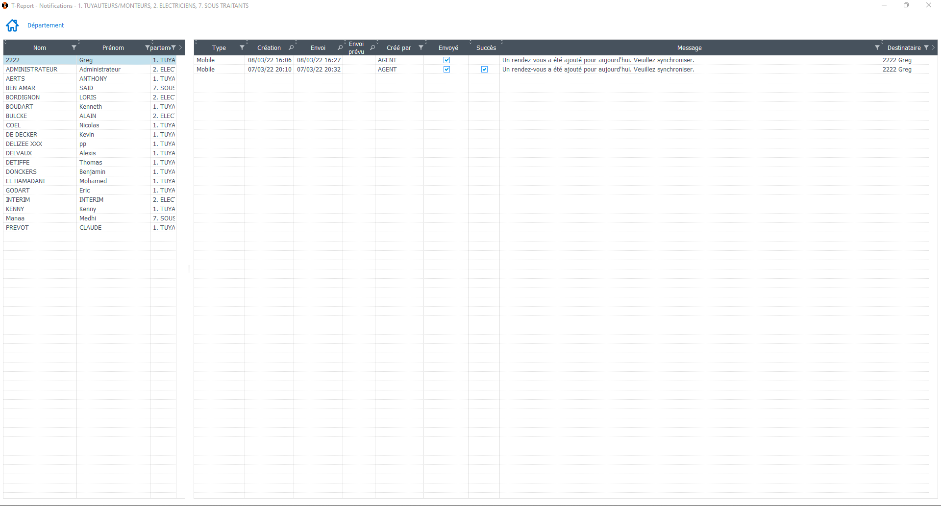 Historique Cette page permet de consulter les notiications générées par T-REPORT Cete fenetre reprend les notifications envoyées auprès des utilisateurs.