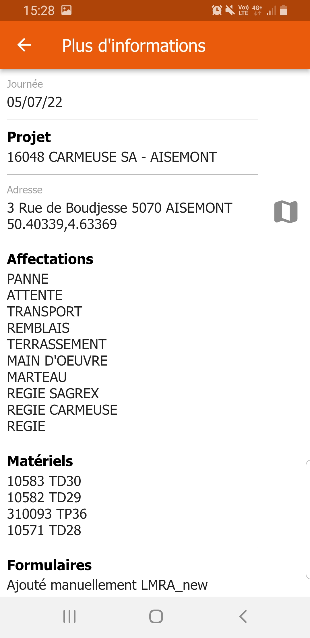Il est possible d'y ajouter des compléments auquels l'utilisateur mobile doit répondre ( affectations, index matériel , formulaire et articles)