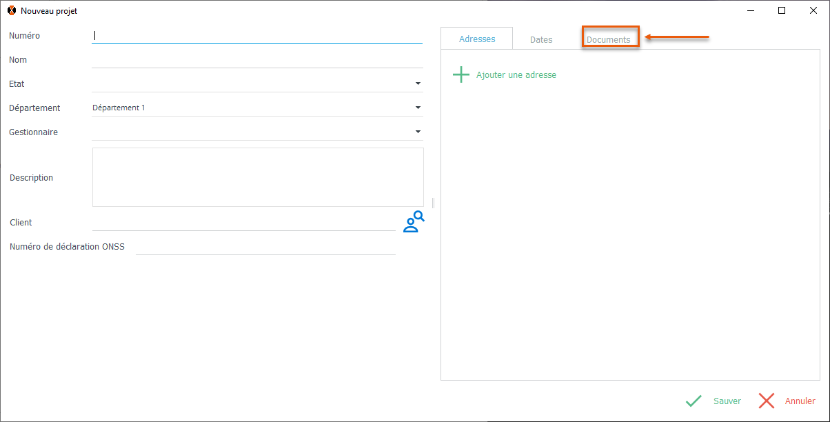 Lier des documents au projet Cliquez sur l'onglet "Documents" afin de faire apparaitre la gestion des documents.