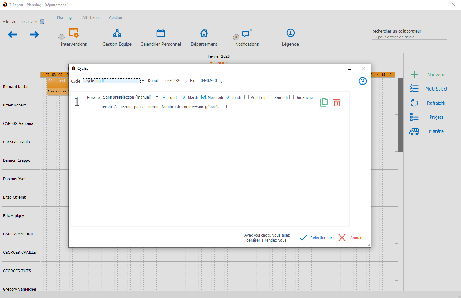 Tout d'abord, vous devez avoir au moins un cycle configuré dans l'application T-Report -> voir rubrique