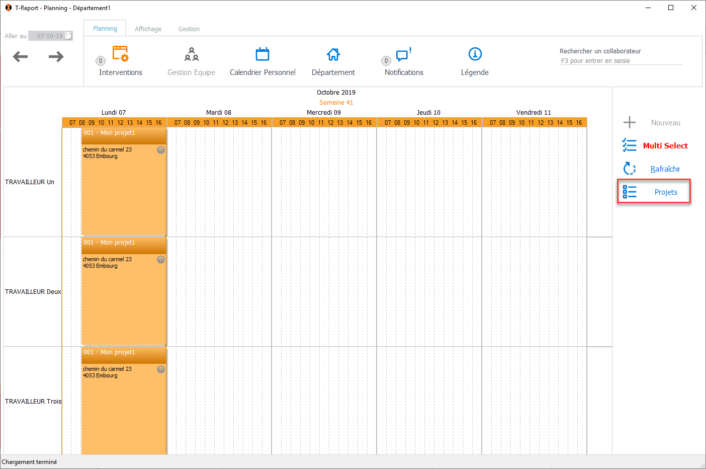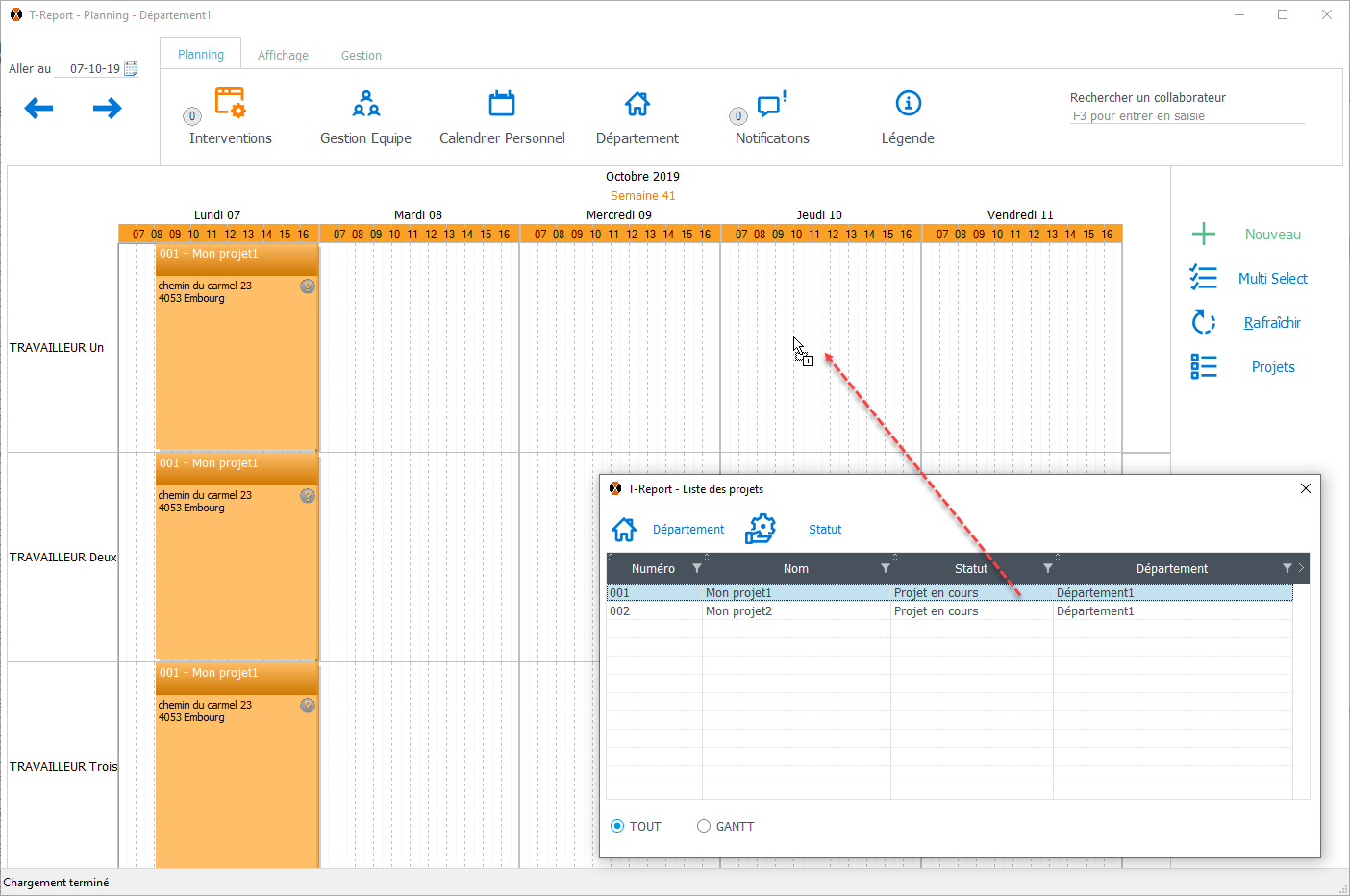 Déplacez le projet à la date souhaitée pour un collaborateur à l'aide d'un glisser-déposer