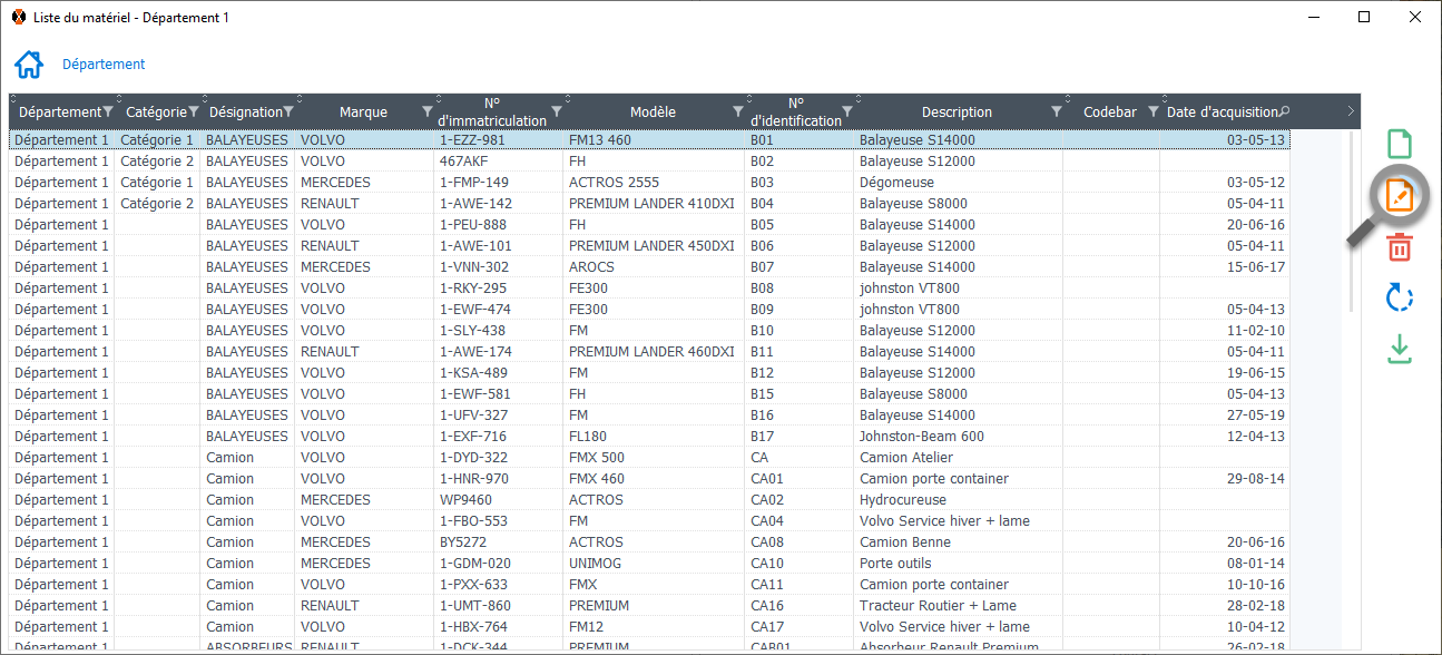 Modifier du matériel Cliquez sur "Editer" pour modifier du matériel. La même fenêtre que pour encoder du nouveau matériel s'ouvre.