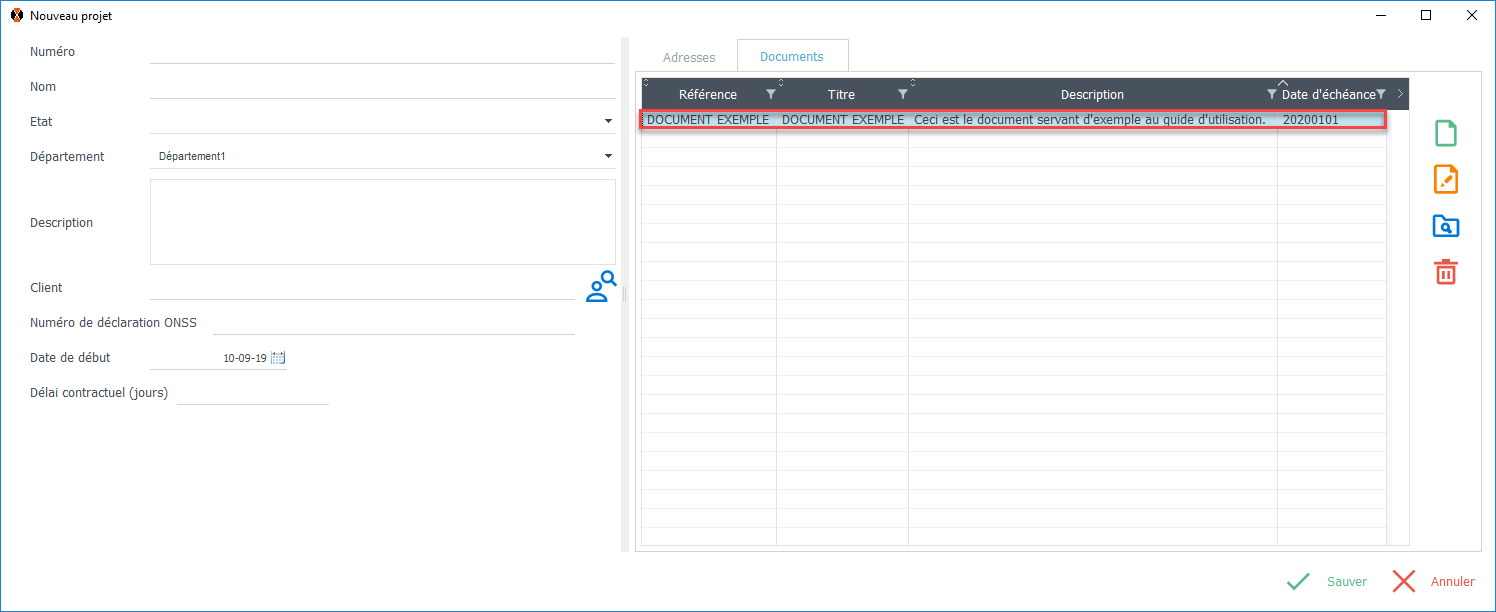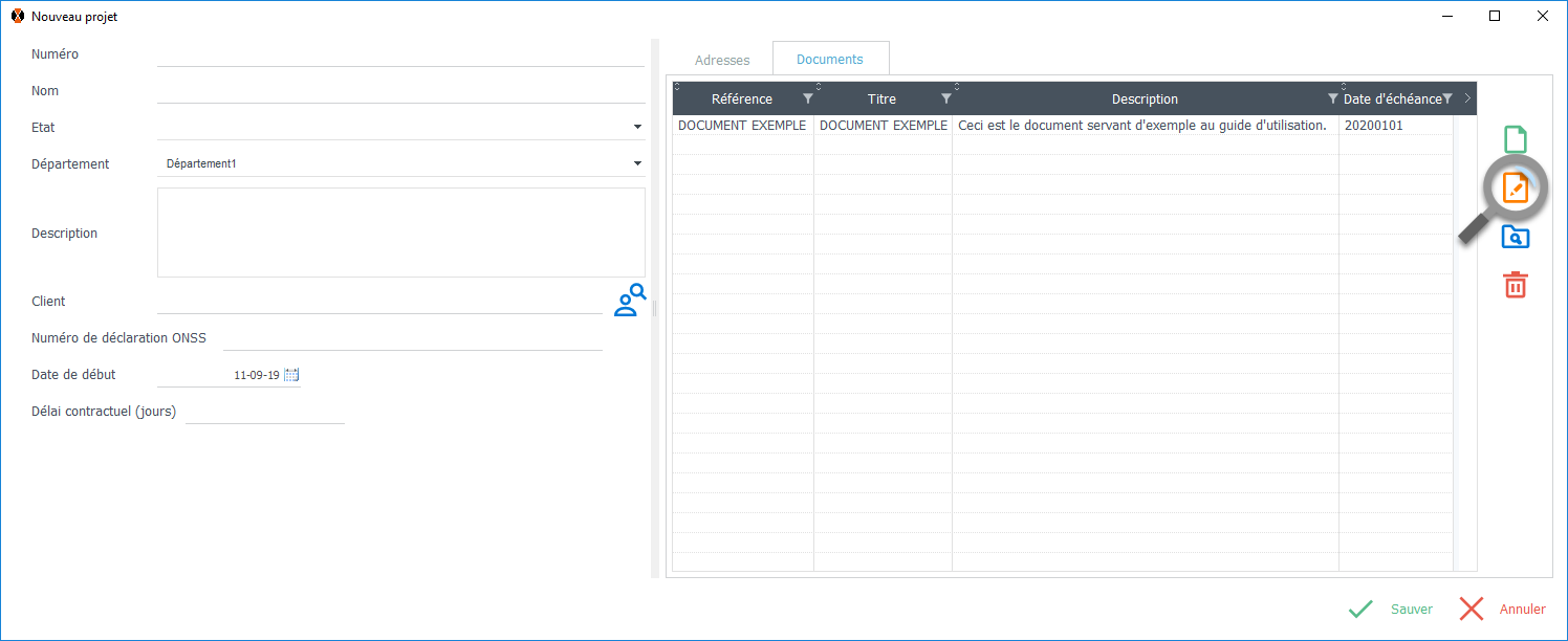Modifier un document Sélectionnez le document à modifier en cliquant dessus Cliquez sur l'icône "Modifier" Modifiez les informations souhaitées puis validez en cliquant sur "Sauver"