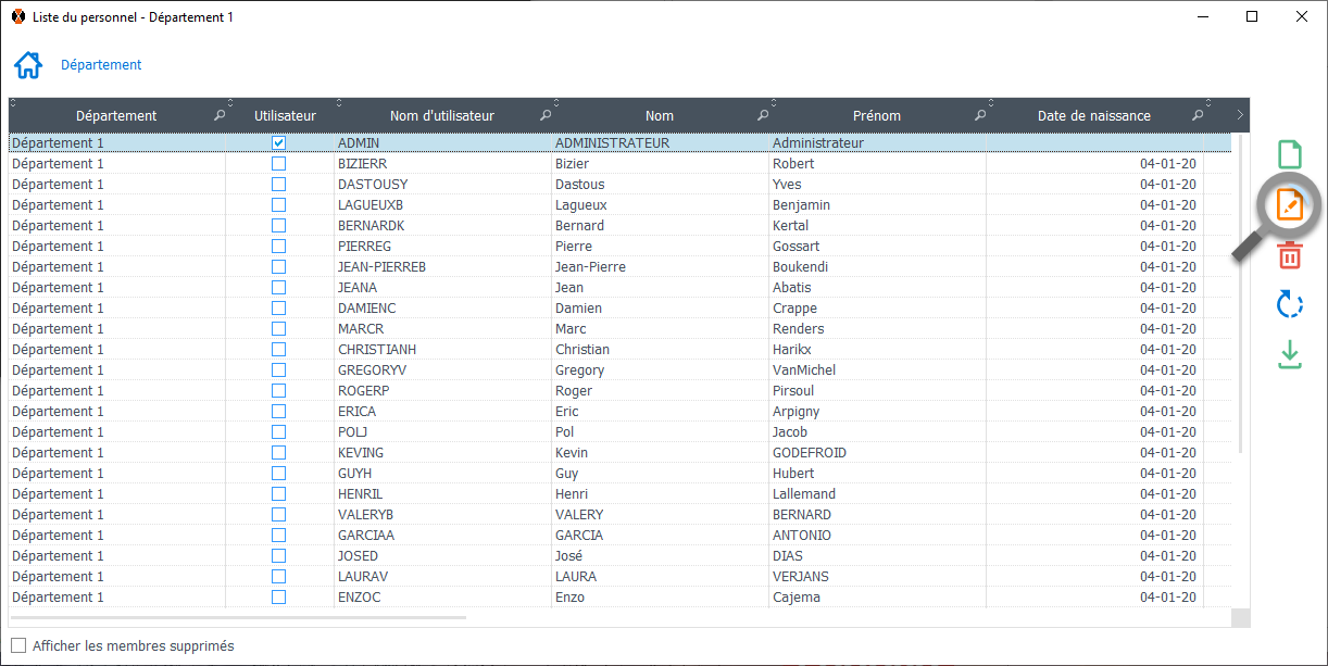Modifier un membre du personnel Vous pouvez modifier la fiche d'un membre du personnel en cliquant sur "Modifier" La même fenêtre que la création du personnel s'ouvre (voir la rubrique précédente ""Créer un membre du personnel").