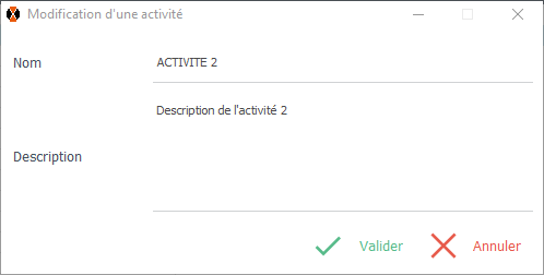 Modifier une activité Pour modifier une activité, cliquez sur "Editer" Remplissez les champs et cliquer sur "Valider"