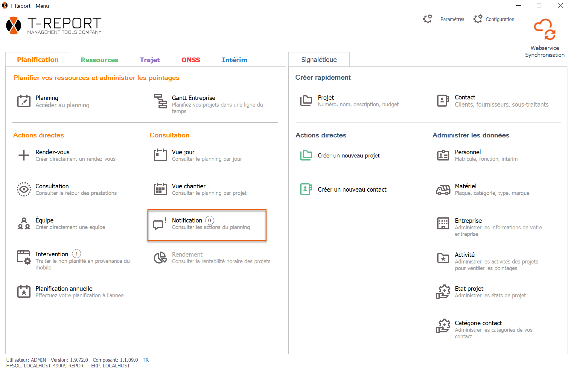 Notification Le menu "Notification" permet de voir les différentes notifications (conflit dans les rendez-vous du planning par exemple).