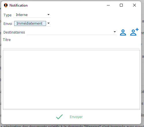 Dans cette page, vous pouvez consulter les notifications internes recues, et envoyer des notifcations directes