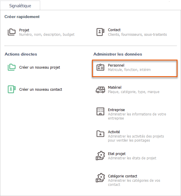 Cette partie du signalétique concerne l'administration du personnel de l'entreprise.