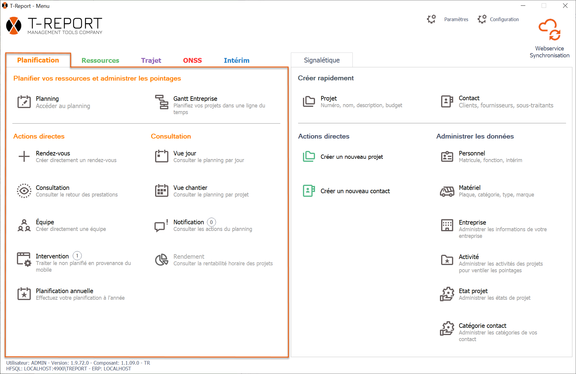 L'onglet "Planification" regroupe les fonctionnalités nécessaires à la gestion du planning de l'entreprise.