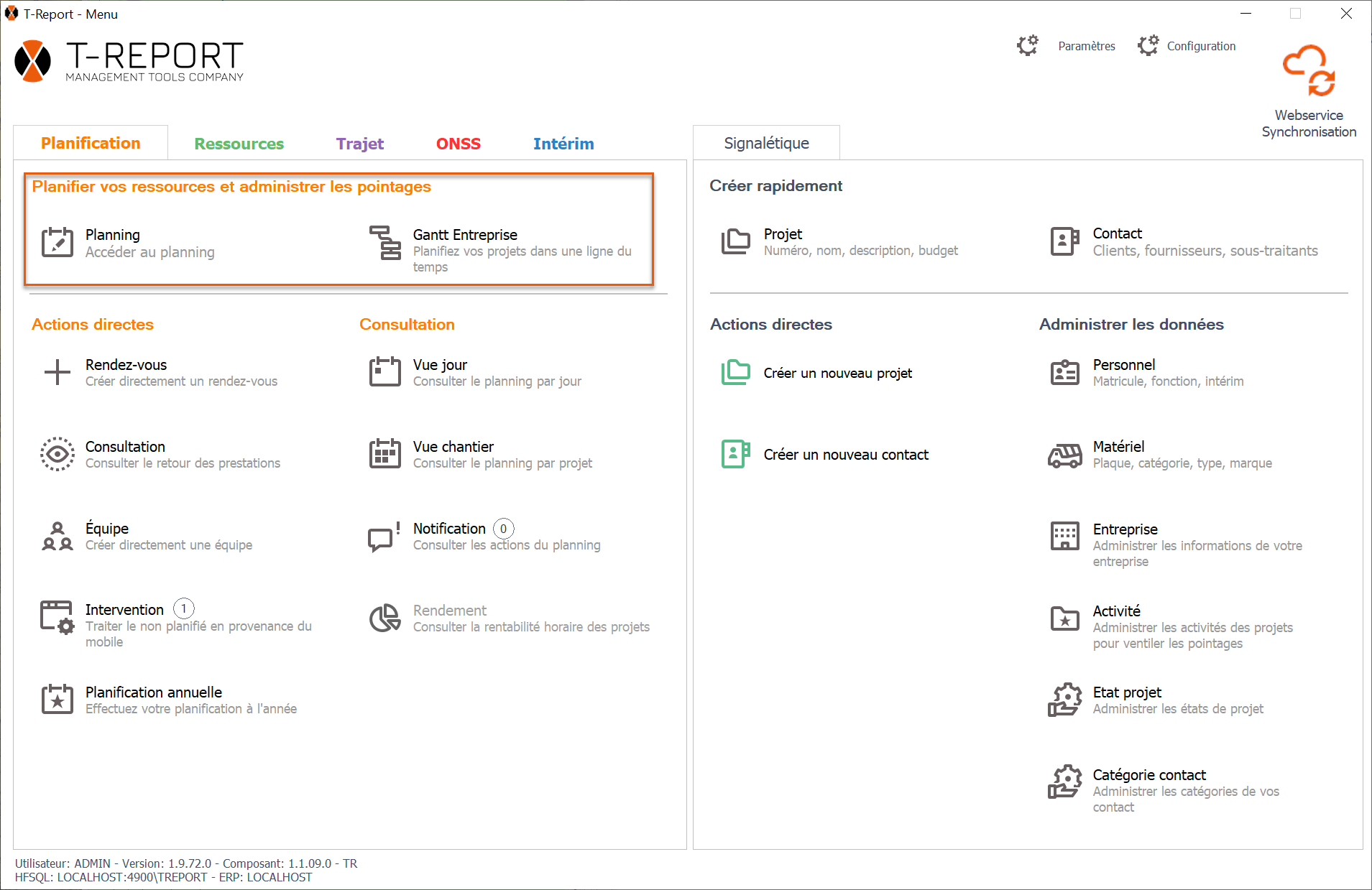 Elle offre un accès rapide aux deux modules amenés à être utilisés le plus souvent dans la gestion du planning.