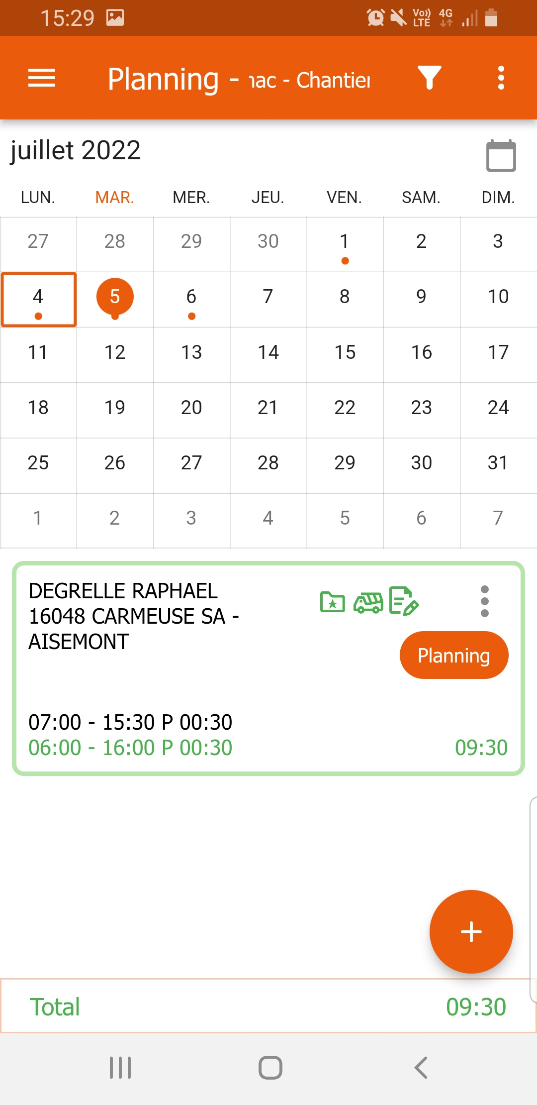 Une fois le pointage effectué dans les différenst onglets; le pointage apparait et les icones de compléments deviennent verts.