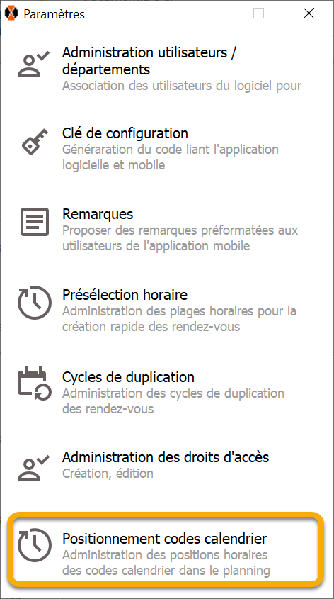 "Positionnement codes calendrier"