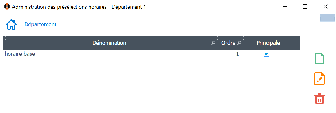 Cochez la case "Principale" pour sélectionner l'horaire principal (choisi par défaut).