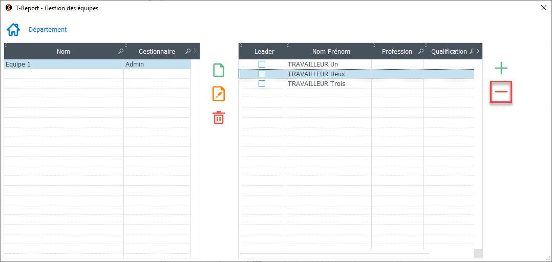 Supprimer un membre d'équipe Sélectionnez un membre et cliquez sur l'icône pour supprimer des membres l'équipe.