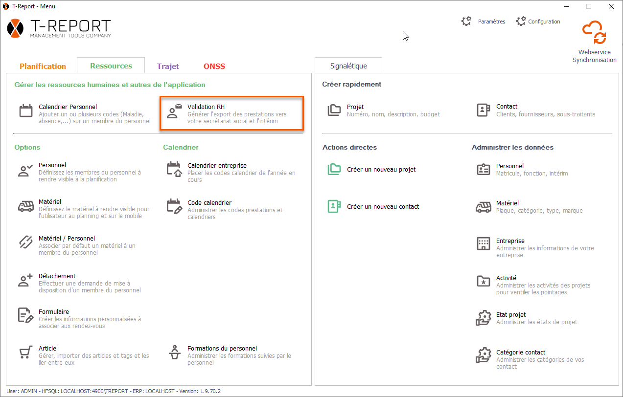 Le module "Validation RH" permet de générer des rapports de prestation pour le secrétariat social.